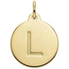 "L" is for Luxurious! Helen's gold L pendant charm offers simple beauty with an ultra-minimal design and graceful approach to perfecting a letter L initial necklace: featuring an L stamped directly into a solid 14k gold disk, this charm is available in stunning white, rose, or yellow gold, as well as sterling silver, with free shipping and gift wrapping available