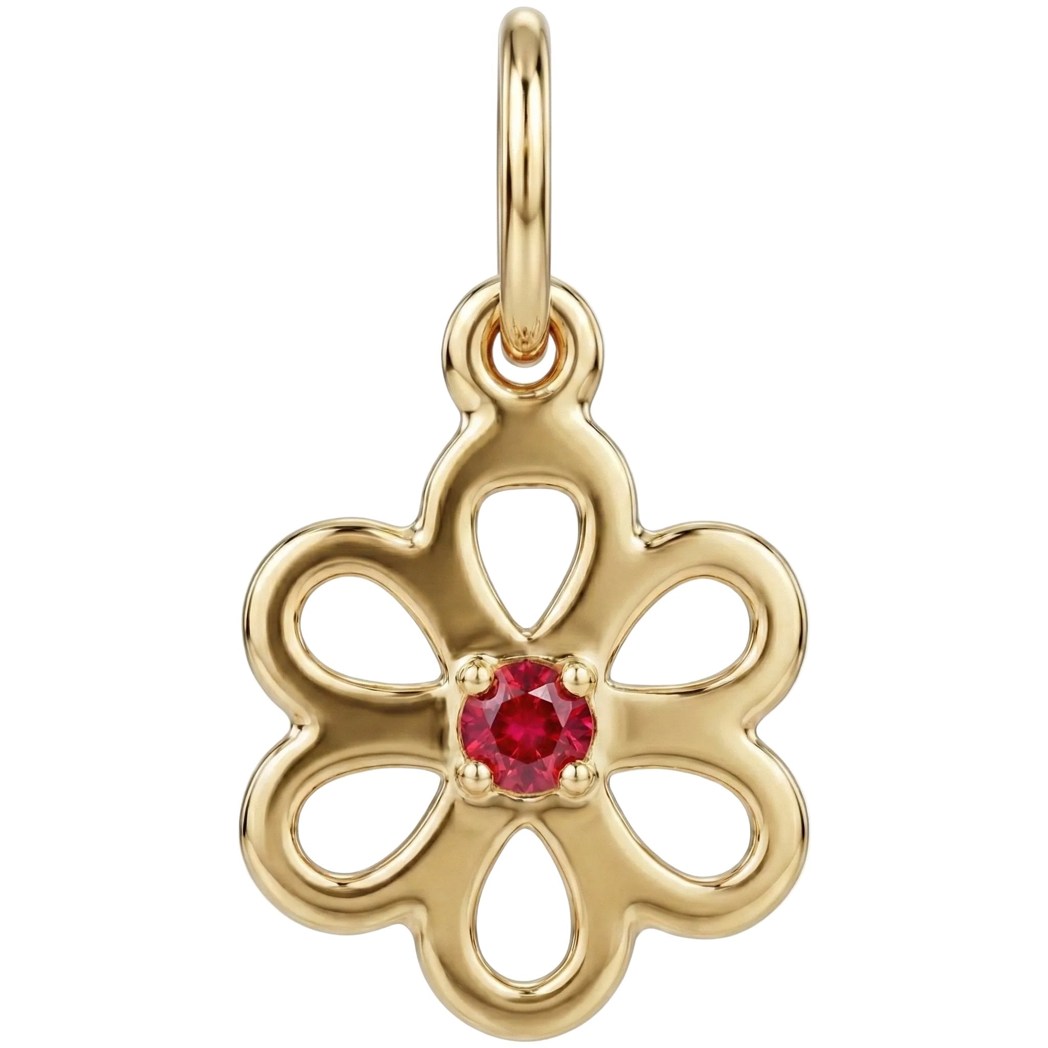 Birthstone Flower Charm with Ruby - Solid 14k Gold