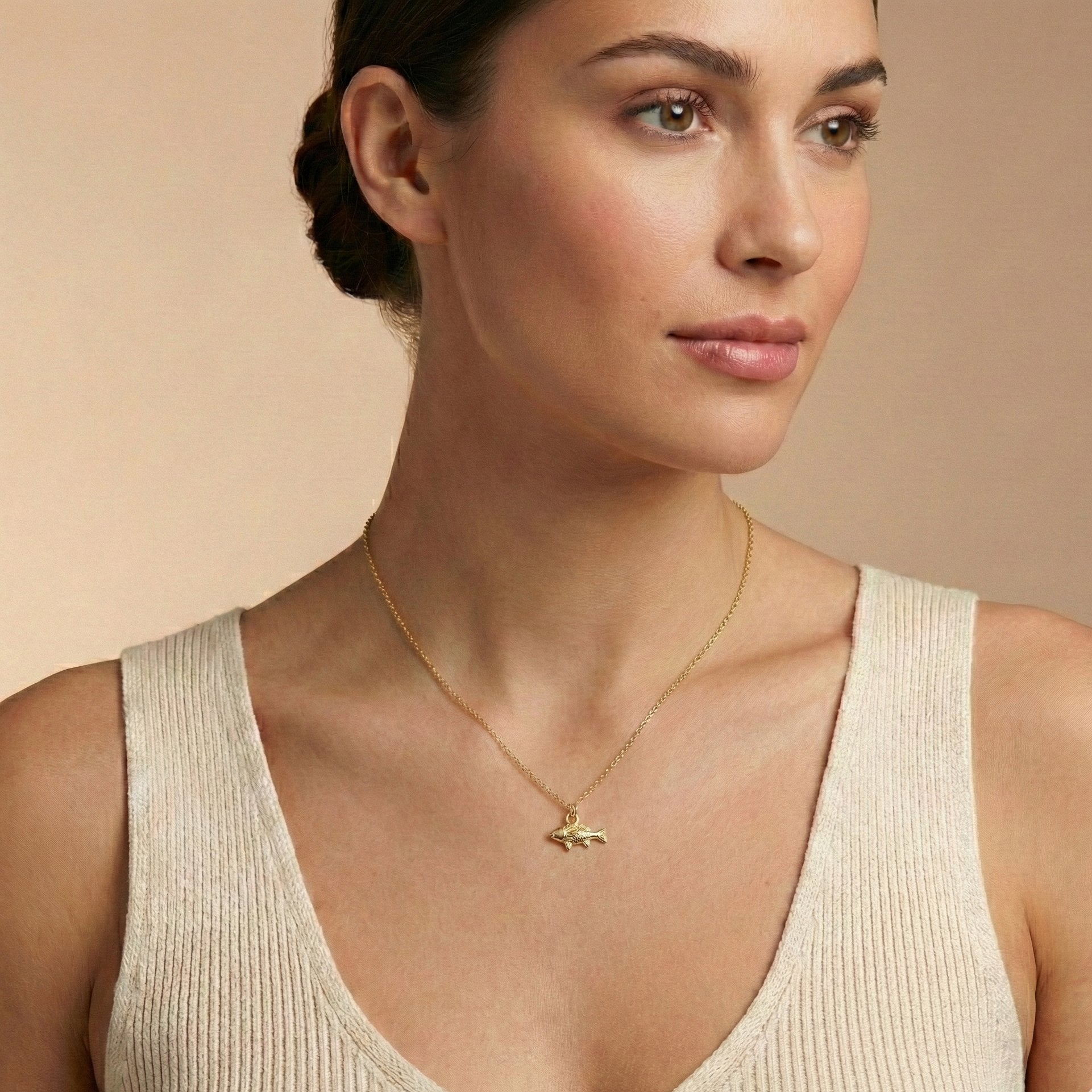 - The "Catch of the Day" Solo: Wear this gold fish on a shimmering Fine Gold Chain. Its organic shape and high-polish finish make it a subtle, everyday necklace that pairs perfectly with summer linens and beachwear.