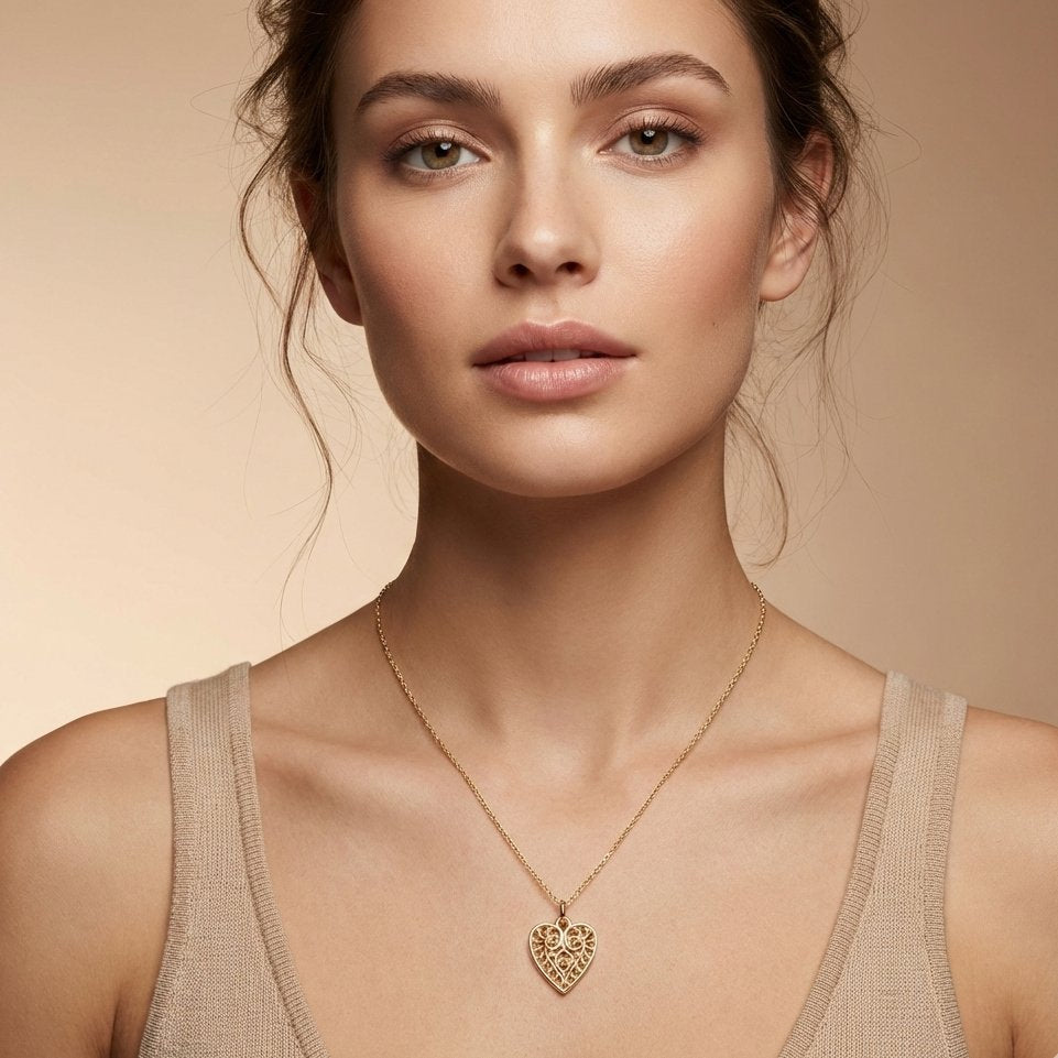 - The Vintage Statement: Wear this large filigree heart on a longer 30" Gold Chain. Its size allows it to serve as a stunning focal point over high-neck blouses or sweaters, channeling Victorian-era elegance.