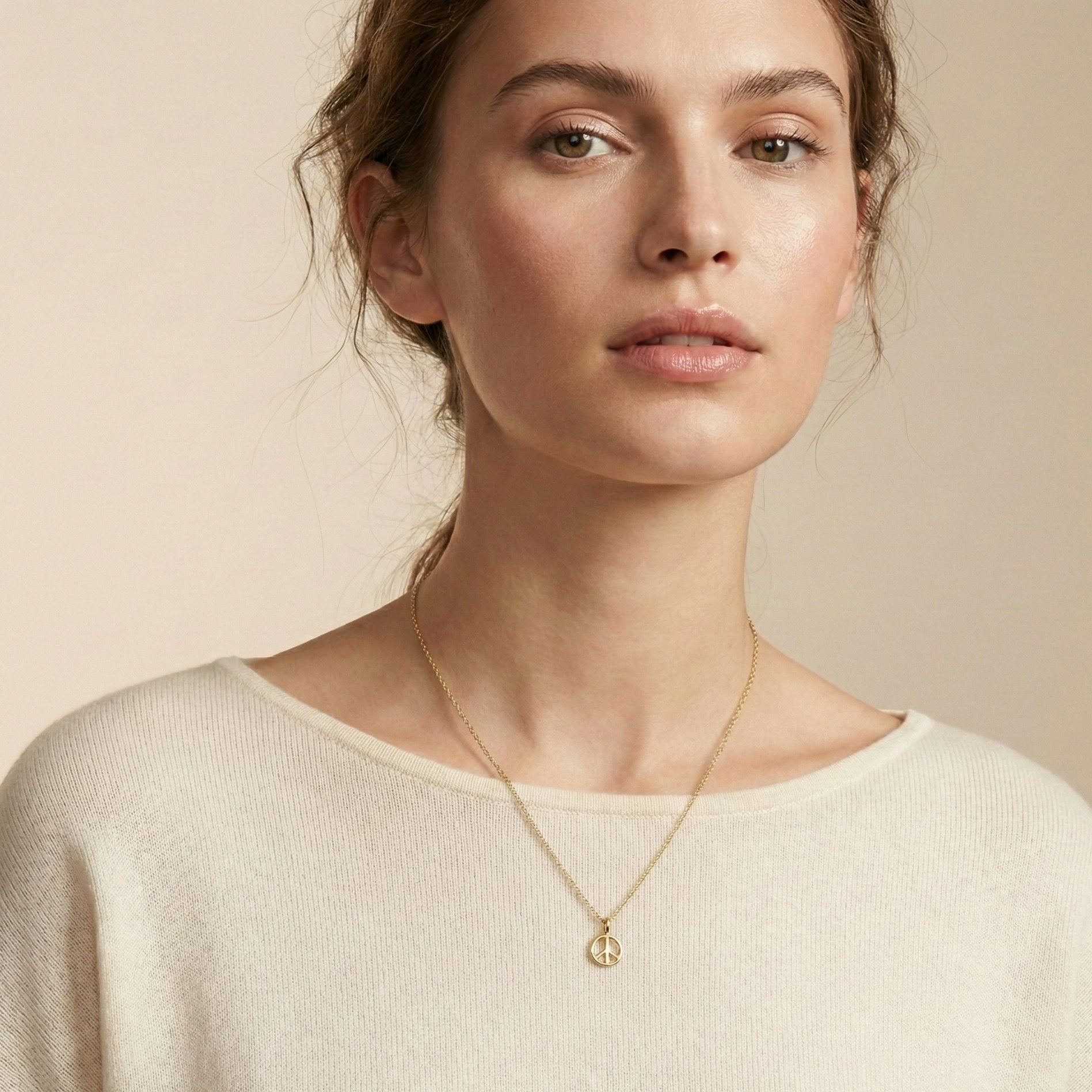 • The Modern Pacifist: Wear this peace sign pendant solo on a Fine Gold Chain for a sleek, minimalist reminder of your values.
