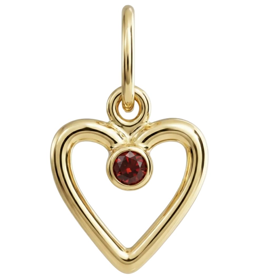 Birthstone Heart Charm with Garnet - Solid 14k Gold
