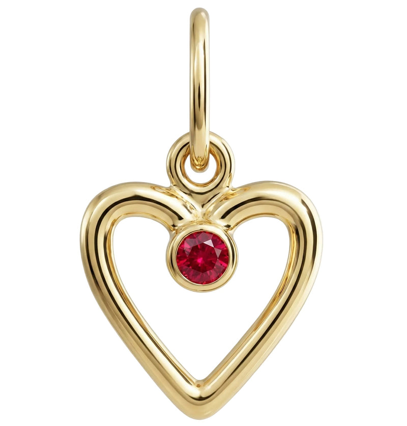 Shop the Birthstone Heart Charm with Ruby today and wear your heart on your sleeve (or neck).