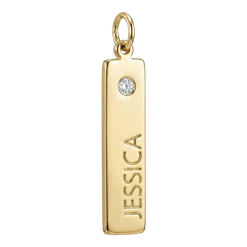 Bar Charm with Diamond - Solid 14k Gold Modern minimalism, elevated with a touch of timeless sparkle. Redefine your everyday essentials with the Helen Ficalora Bar Charm with Diamond. Meticulously handcrafted in Solid 14k Gold (Yellow, White, or Rose), this sleek vertical pendant takes the classic geometric bar design and upgrades it with a single, brilliant white **Diamond** accent. It strikes the perfect balance between contemporary edge and classic luxury. How to Style Your Modern Luxury Look The Elevated Solo: Wear this diamond bar pendant on a Fine Gold Chain. The vertical line elongates the neck, while the diamond catches the light for a subtle, sophisticated shimmer. The Geometric Stack: Layer it with a round Disk Charm or a coin pendant to create a trendy "Shape Stack" that contrasts lines and curves. The "Yours & Mine" Bracelet: Add this piece to a Gold Charm Bracelet alongside an Initial Charm for a customized look that tells your story. The Perfect Gift for Her This charm is an ideal gift for the woman who loves **understated elegance**. It works beautifully for **anniversaries**, **birthdays**, or as a "just because" upgrade to her jewelry collection. Unlike plated fashion jewelry, this **solid gold and diamond keepsake** is designed to last a lifetime, maintaining its shine and value forever. Details & Quality Material: Solid 14k Gold (Yellow, White, Rose) Gemstone: Genuine White Diamond Design: Vertical Rectangular Bar with Stone Accent Style: Geometric / Modern Charm Origin: Made in New York Finish: High-polish shine Compatibility: Fits all standard Helen Ficalora chains Shop the Bar Charm with Diamond today and add a little luxury to your lines.