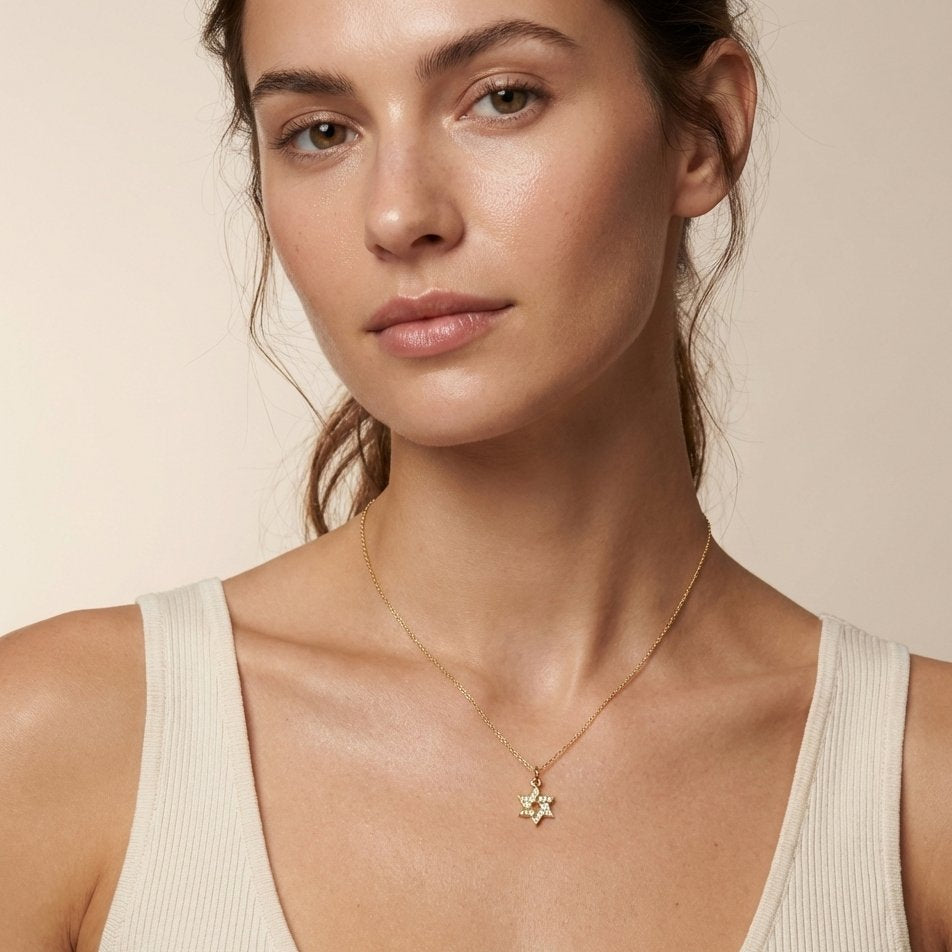Star of David Mini Charm with Pavé Diamonds - Solid 14k Gold A brilliant symbol of faith, heritage, and timeless identity. Wear your heritage with pride and elegance with the Helen Ficalora Star of David Mini Charm with Pavé Diamonds. Meticulously handcrafted in Solid 14k Gold (Yellow, White, or Rose), this exquisite pendant features the traditional six-pointed star fully encrusted with shimmering **pavé-set diamonds**. It is a modern, luxurious take on a classic symbol, perfect for everyday wear or special religious occasions. How to Style Your Faith The Daily Blessing: Wear this diamond Jewish star pendant on a Fine Gold Chain for a sophisticated statement of identity that sparkles in any light. The Heritage Stack: Layer it with a Hamsa Charm or a "Chai" Charm to create a meaningful necklace that represents life, luck, and protection. The Bat Mitzvah Bracelet: Add this piece to a Gold Charm Bracelet to commemorate a coming-of-age ceremony or a trip to Israel. The Perfect Gift for Jewish Milestones This charm is a cherished gift for **Bat Mitzvahs**, **Hanukkah**, **Passover**, or weddings. It serves as a beautiful connection to tradition and community. Unlike costume jewelry, this **solid gold and diamond keepsake** is an heirloom designed to be passed down through generations. Details & Quality Material: Solid 14k Gold (Yellow, White, Rose) Gemstones: Genuine White Diamonds (Pavé Set) Style: Star of David / Magen David Mini Charm Origin: Made in New York Finish: High-polish shine with brilliant sparkle Compatibility: Fits all standard Helen Ficalora chains Shop the Star of David Mini Charm with Pavé Diamonds today and shine with pride.