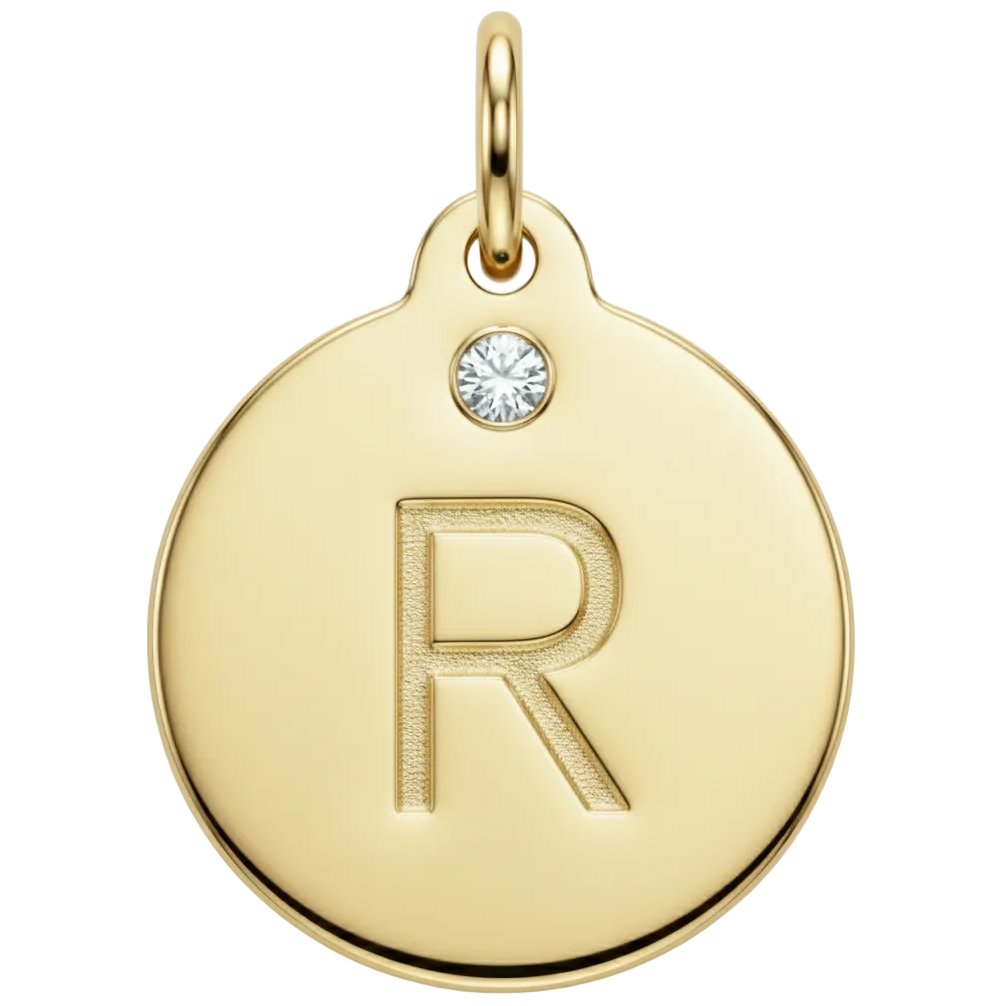 Alphabet Charm Letter "R" with Diamond - Solid 14k Gold