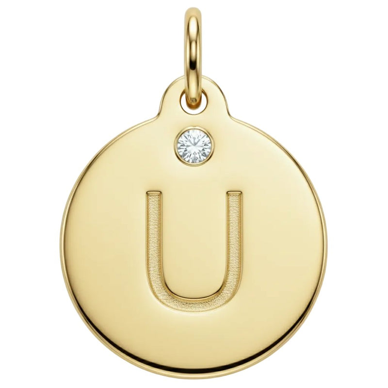 Alphabet Charm Letter "U" with Diamond - Solid 14k Gold