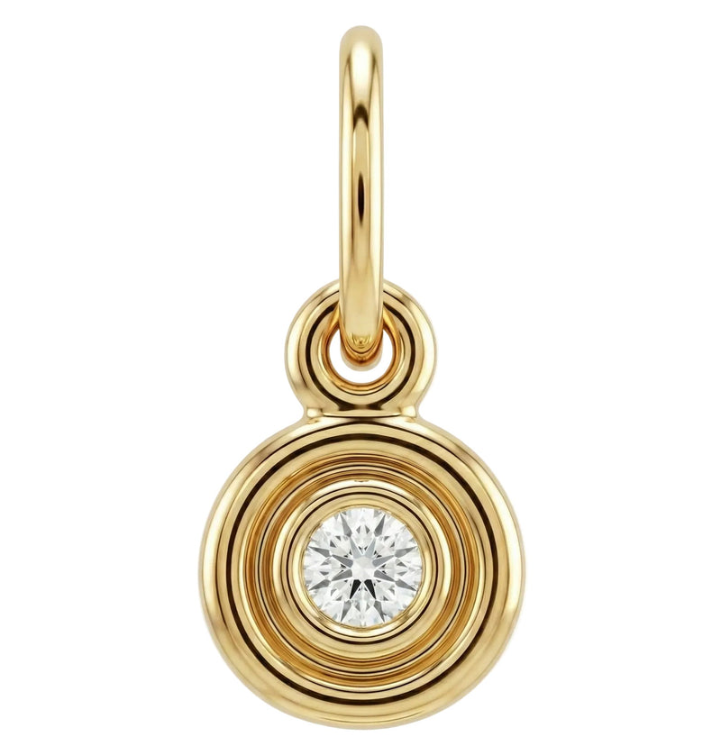 Double Ring Diamond Charm - Solid 14k Gold