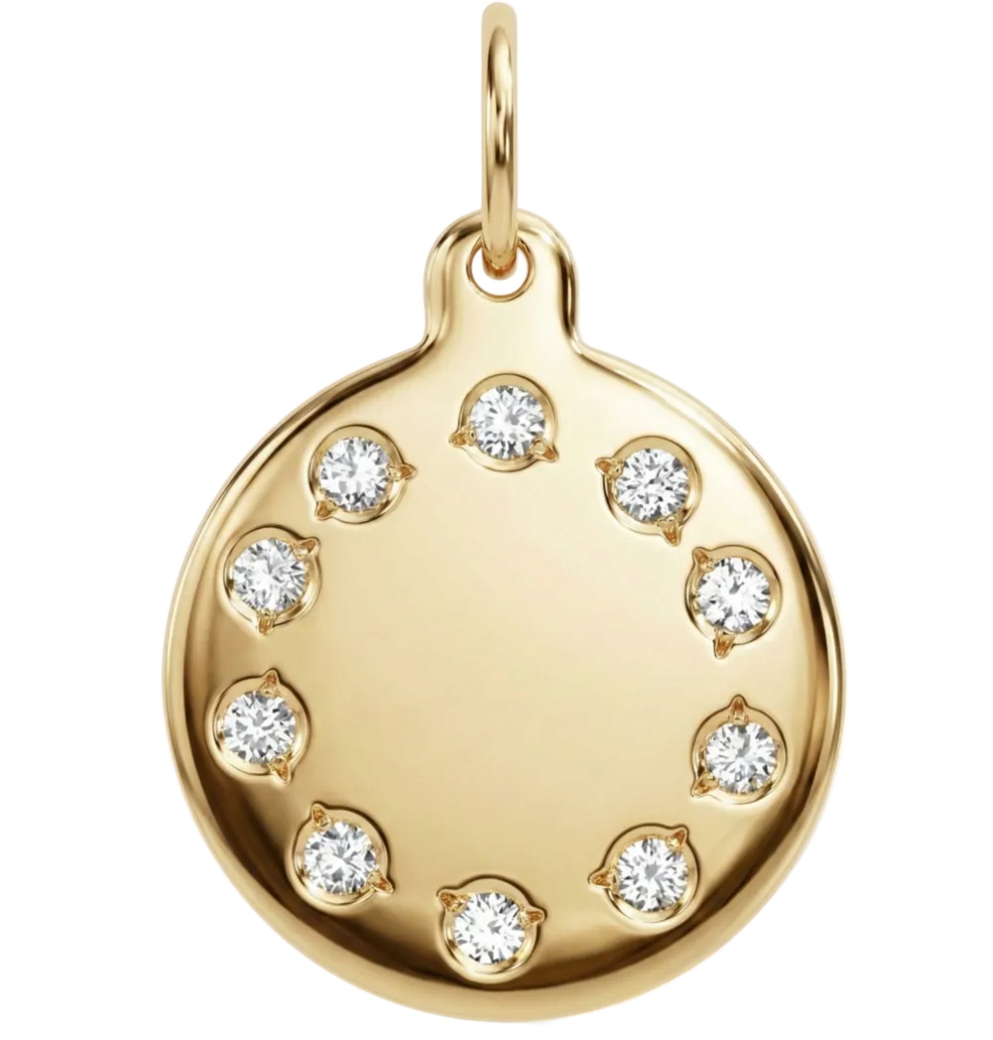 Small Eternity Disk Charm with Pavé Diamonds - Solid 14k Gold