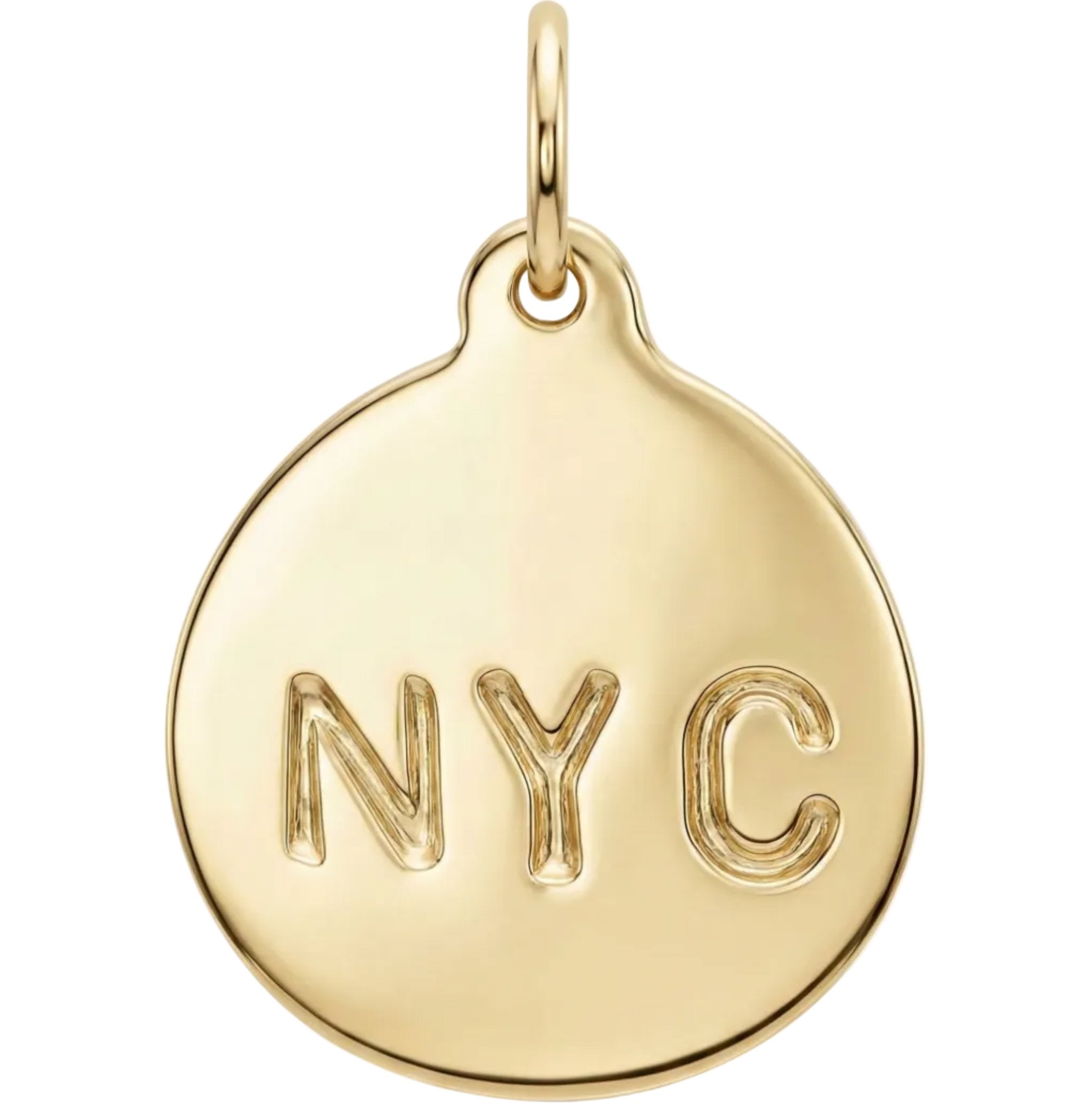 Wear the spirit of the city that never sleeps with the Helen Ficalora NYC Charm. Meticulously handcrafted in **Solid 14k Gold (Yellow, White, or Rose)** right here in New York, this classic disk pendant features the iconic "NYC" stamp. It is the ultimate authentic tribute to the grit, glamour, and energy of the Big Apple.