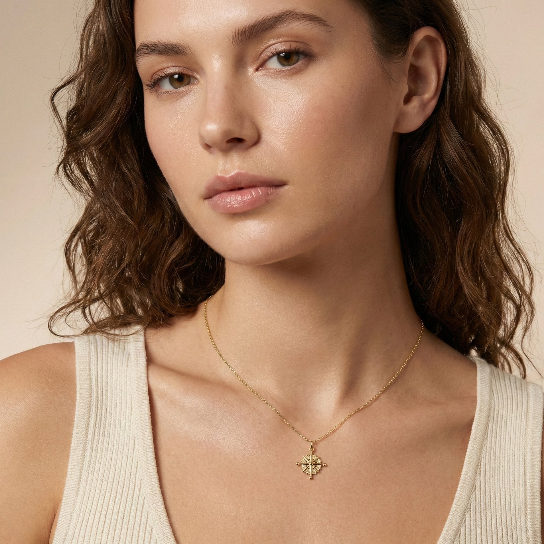 - The Traveler's Essential: Wear this compass pendant solo on a sturdy Fine Gold Chain for a meaningful everyday accessory that pairs with any outfit.